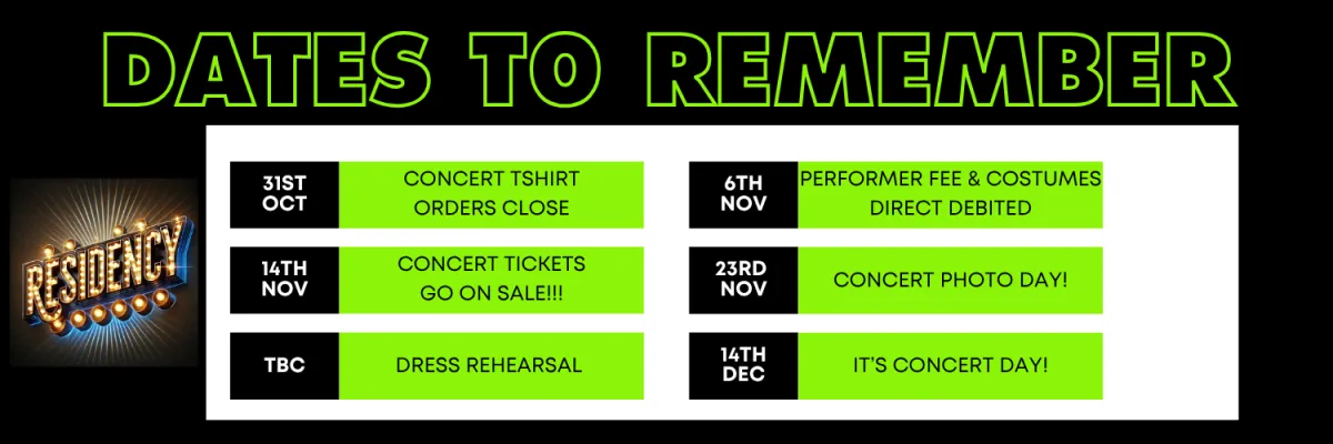 We are so excited to announce the details for this years End of Year Concert - RESIDENCY!!